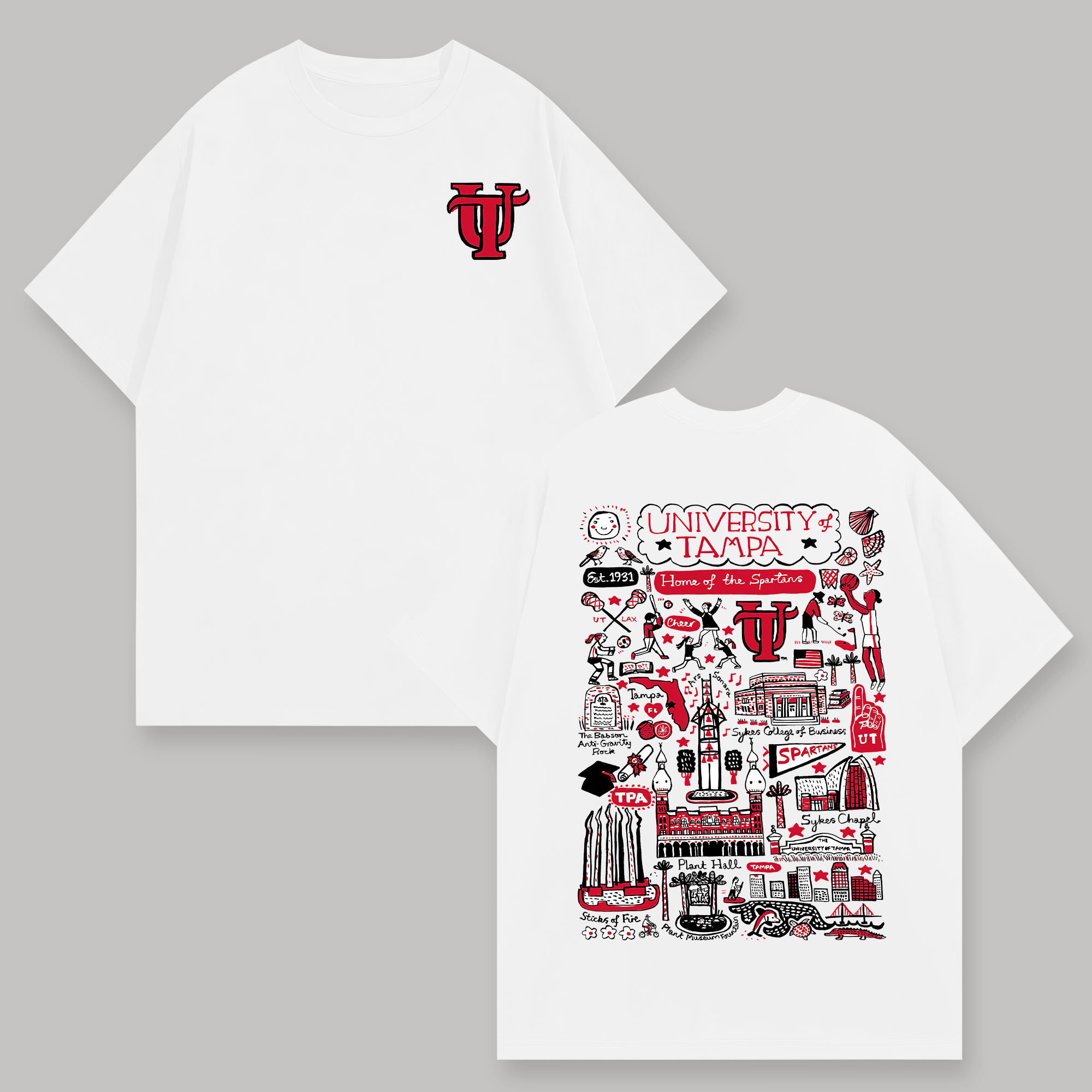 University of Tampa Printed Oversized Unisex T-shirts