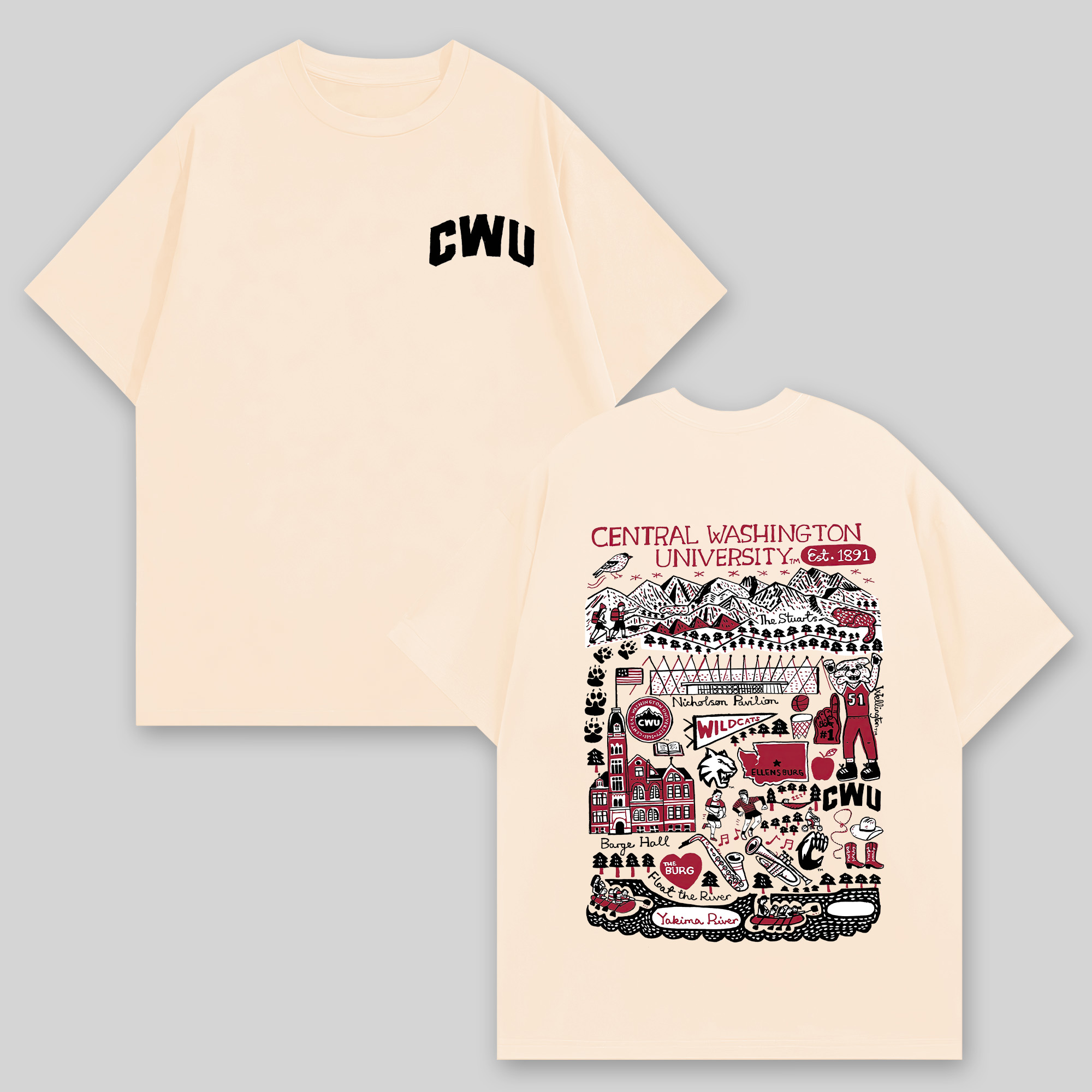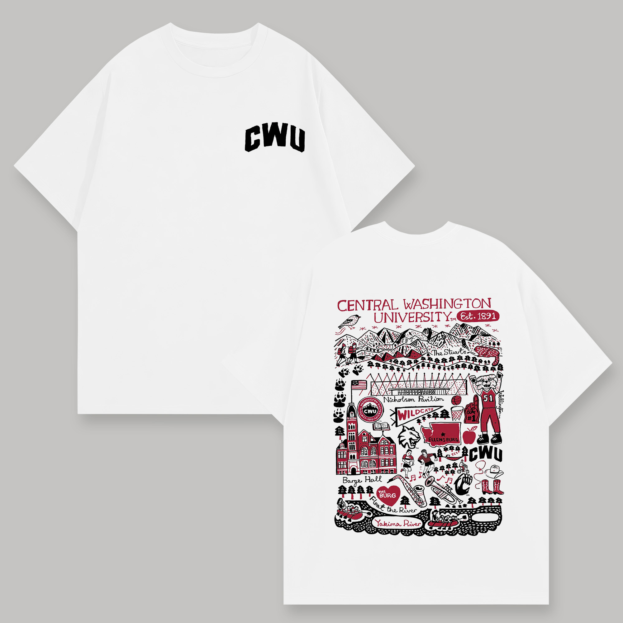 Central Washington University Printed Oversized Unisex T-shirts