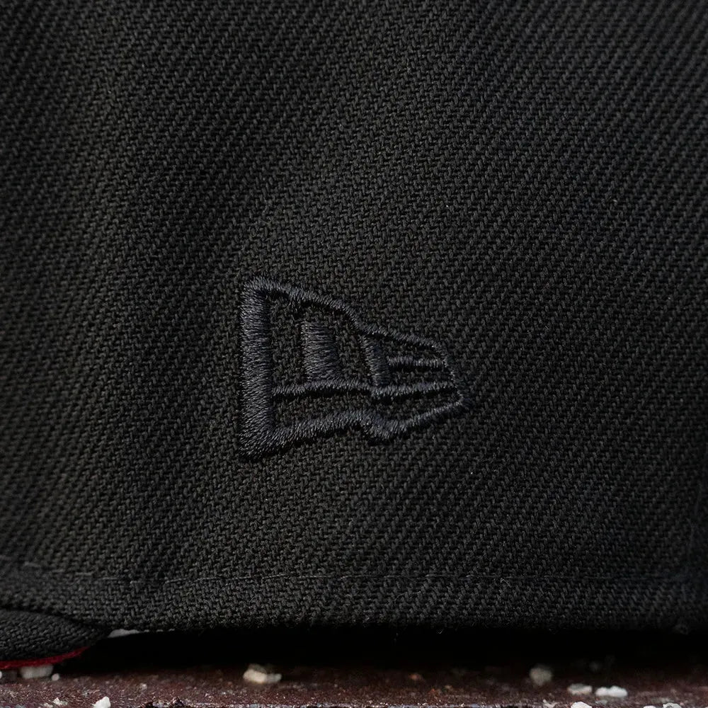 This 59Fifty MLB cap from features an embroidered Los Angeles Dodgers logo on the front. The collection pays tribute to the Dodgers with a unique side patch for Dodgers Stadium 1962. The front logo is raised and two-toned, and there is a tonal New Era flag on the left side and a classic Cooperstown Batterman logo on the back. The cap is made in black with a cardinal undervisor and a white sweatband. The sky blue accents on the side patch and MLB logo perfectly complement the front logo's color. As a bonus!
