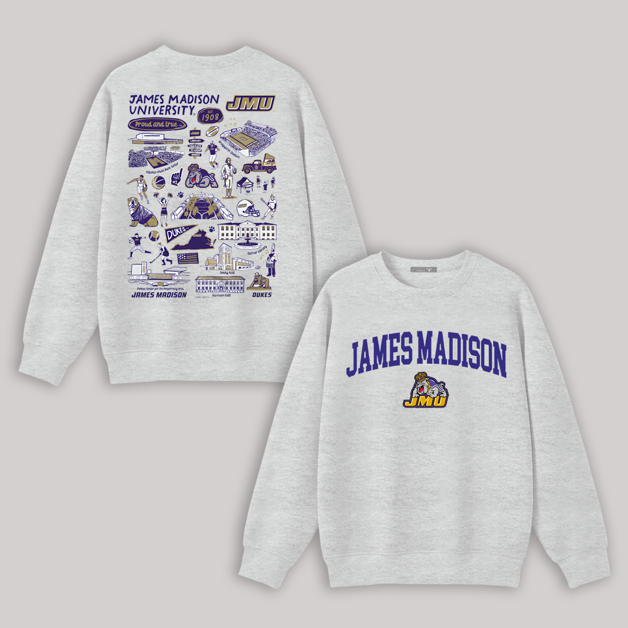 James Madison University Printed Fleece-lined Unisex Sweatshirt
