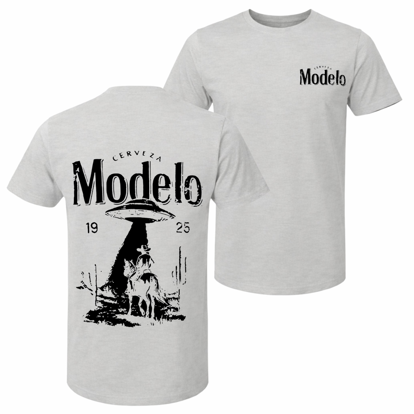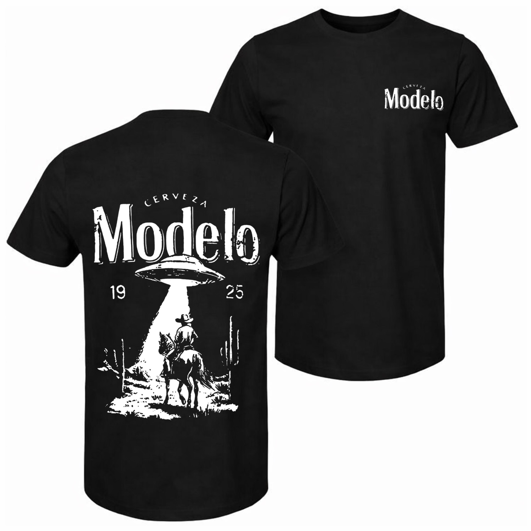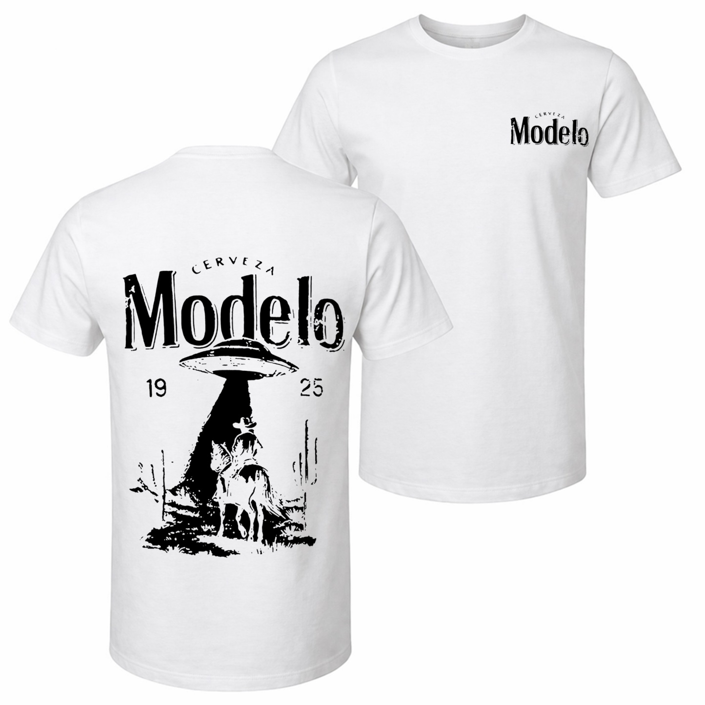 Men's Cowboy UFO Beer Printed Pure Cotton Short-Sleeve Shirt — Unisex Casual Wear, Ideal for Spring and Summer; Cool Graphic Tee featuring a Classic Crew Neck Design; Soft Cotton Fabric, Suitable for All Seasons