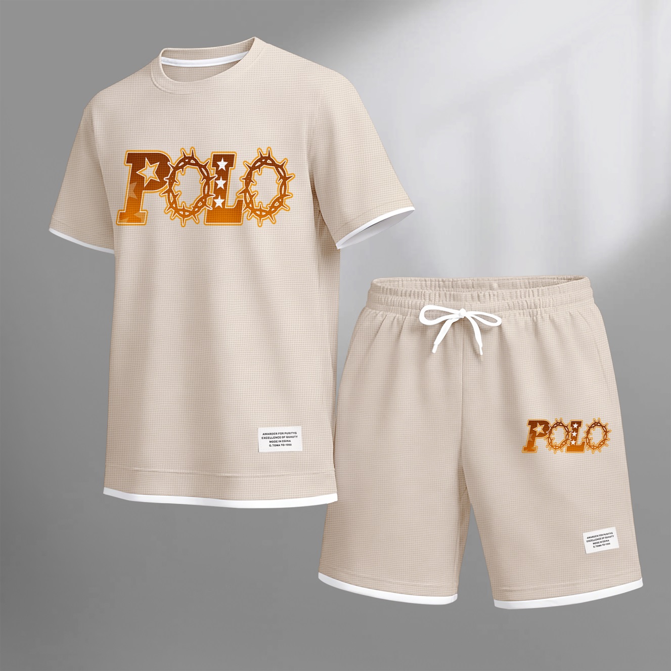 Clothing Type: Short-Sleeved Set Washing Instructions: Machine Washable Fit: Loose Fit Style: Casual, Athletic, Minimalist Season: Spring, Summer Sleeve Type: Regular Sleeve Sleeve Length: Short Sleeve Region of Origin: China Material: Polyester Product Description: Package Includes: Printed Short-Sleeve Top and Shorts Set Premium Fabric: Made of 100% polyester fiber. The fabric is soft, smooth, and comfortable to wear. Wide Application: Perfect for sports and casual wear. Suitable for going out or relaxing at home. Suitable for Various Occasions: A versatile casual style that works well for multiple occasions.