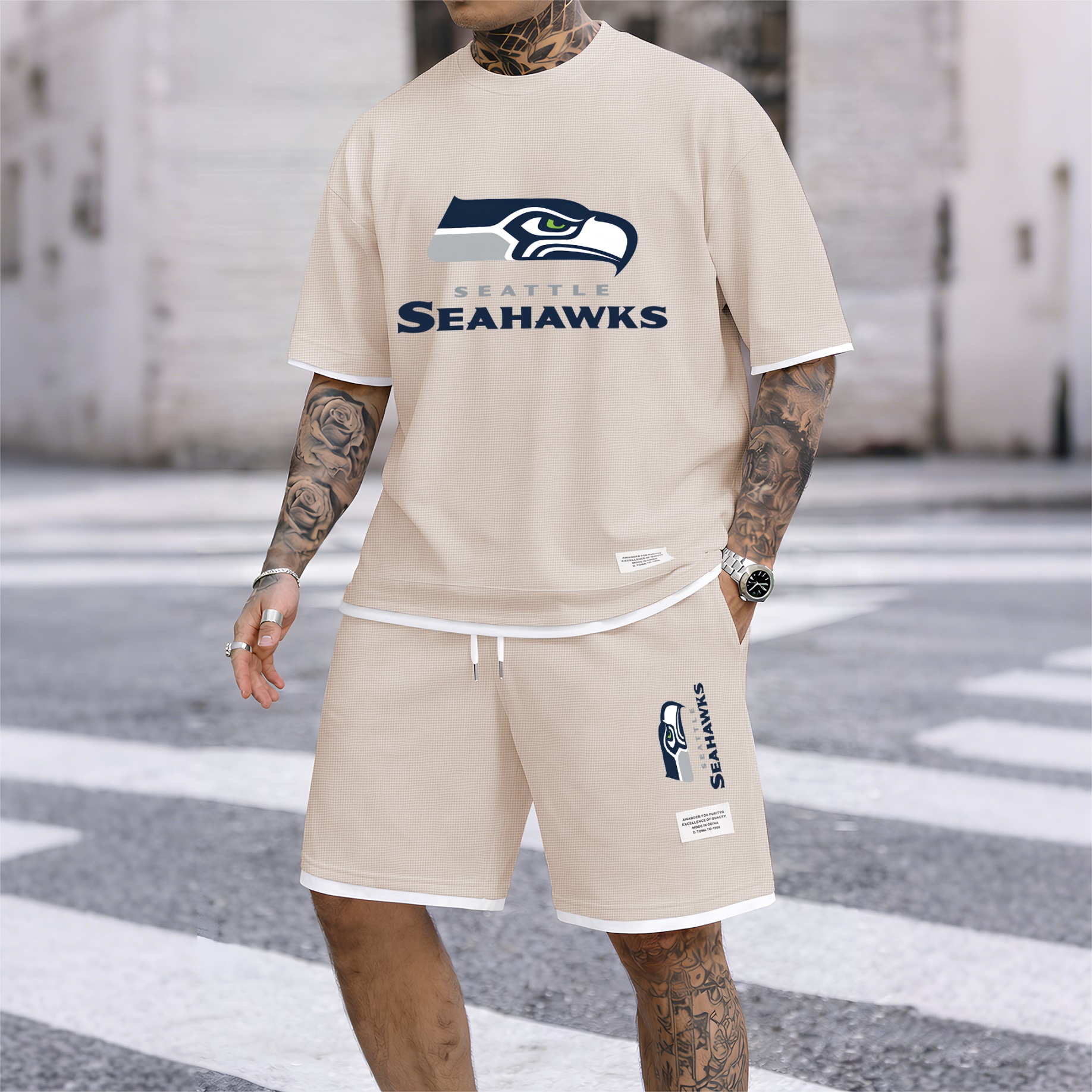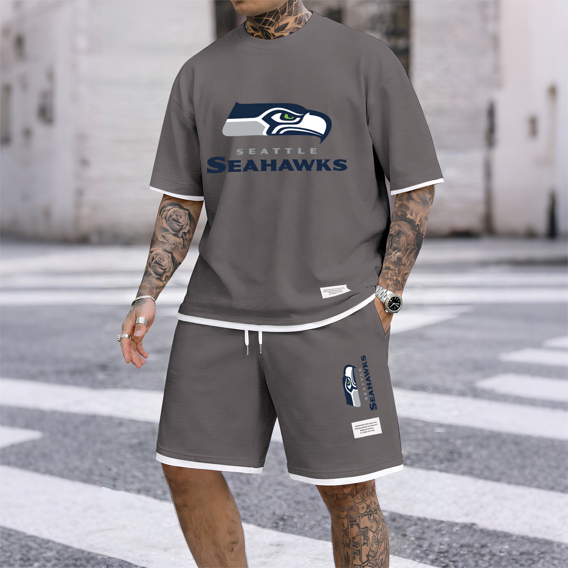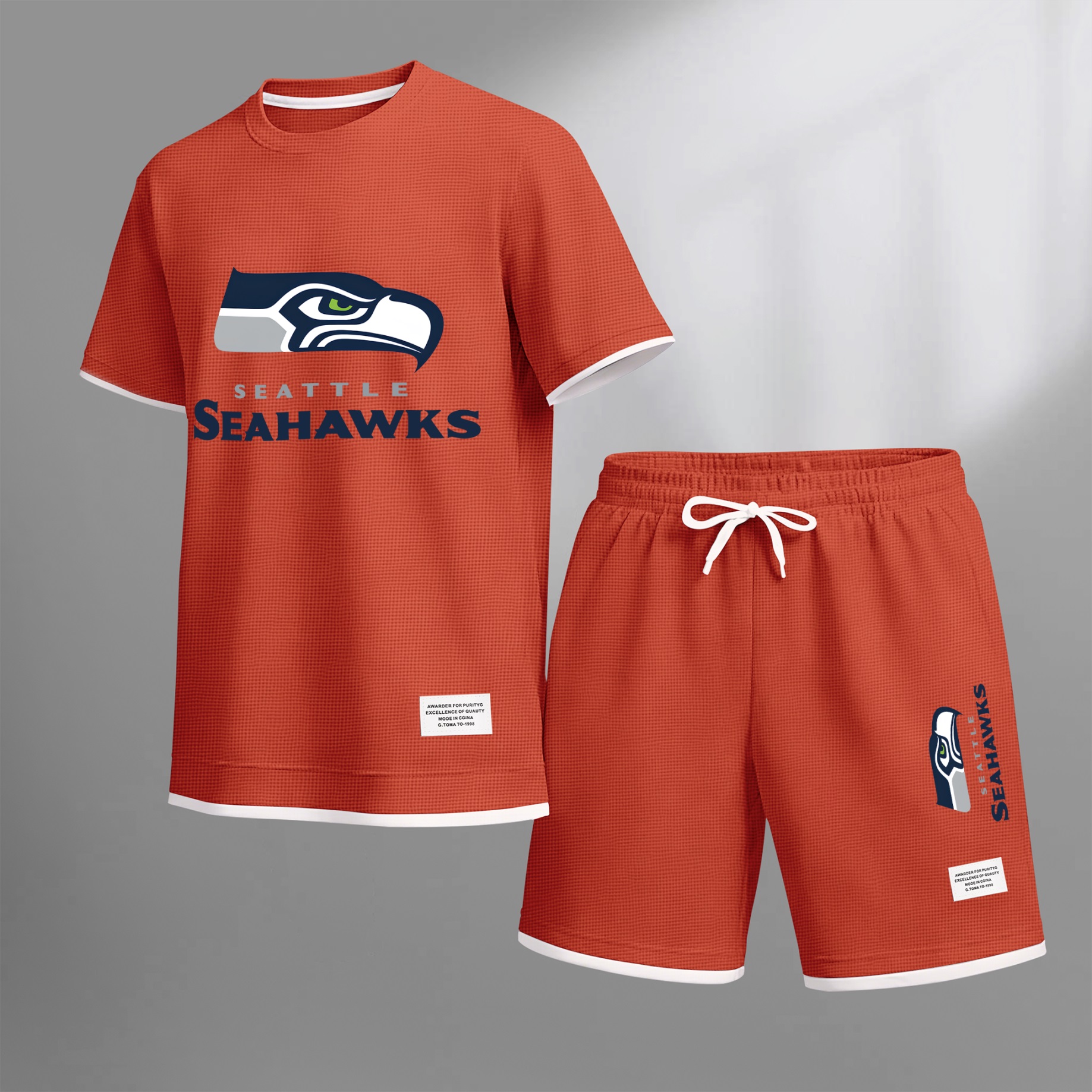 Men's Rugby-Themed Waffle Fabric Short-Sleeved Shirt And Shorts Set 002