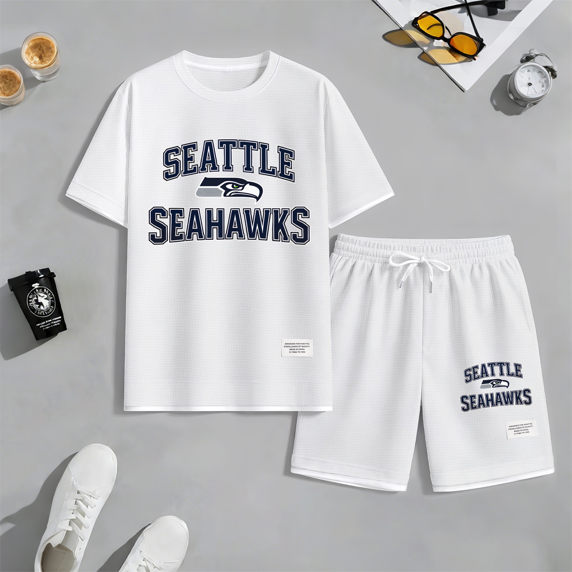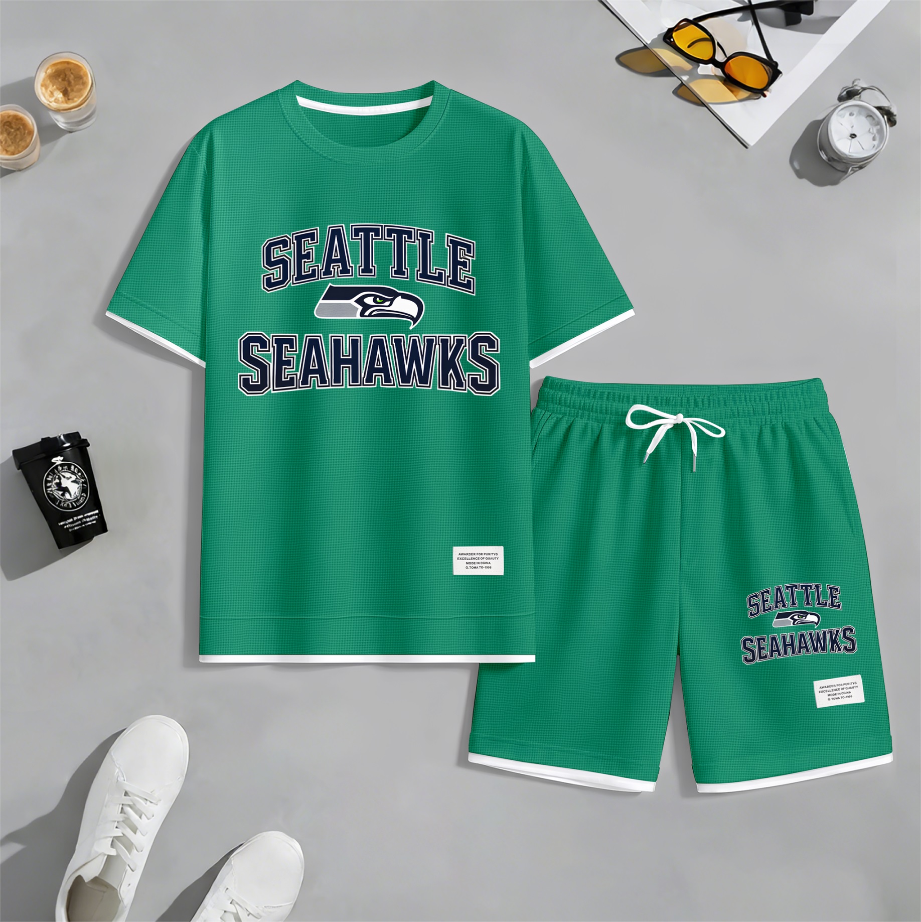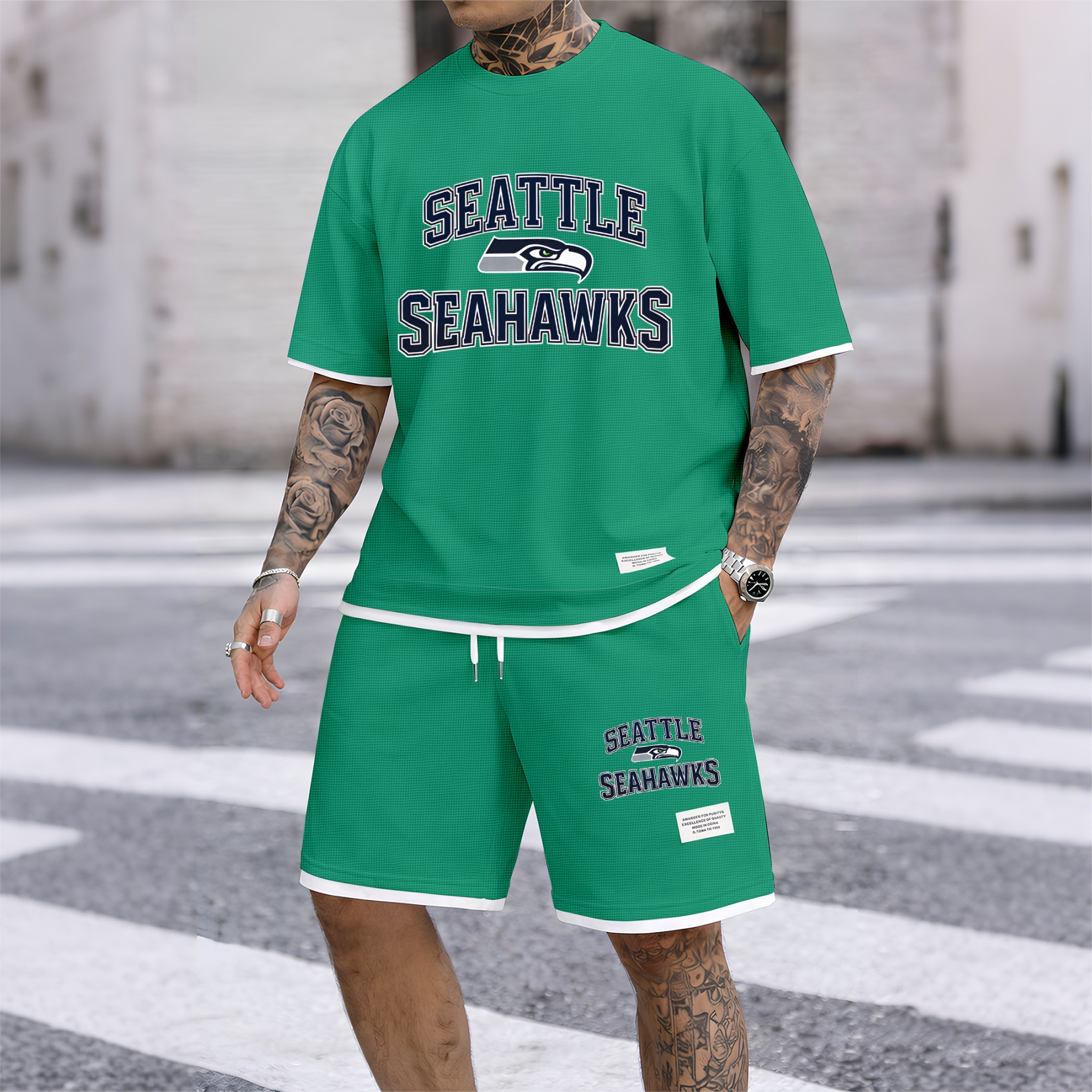 Men's Rugby-Themed Waffle Fabric Short-Sleeved Shirt And Shorts Set 005