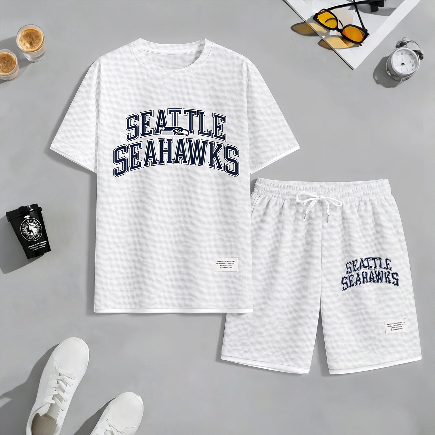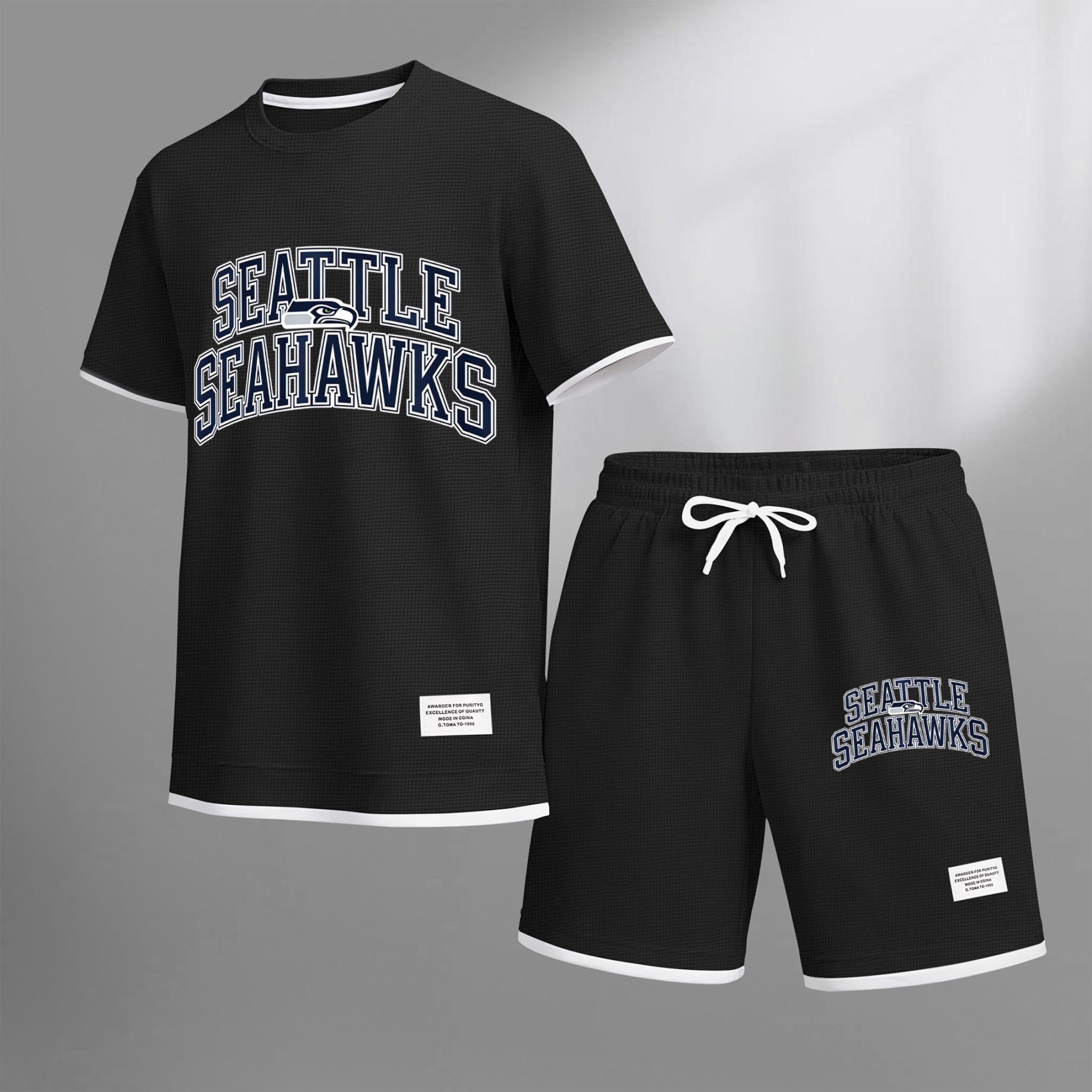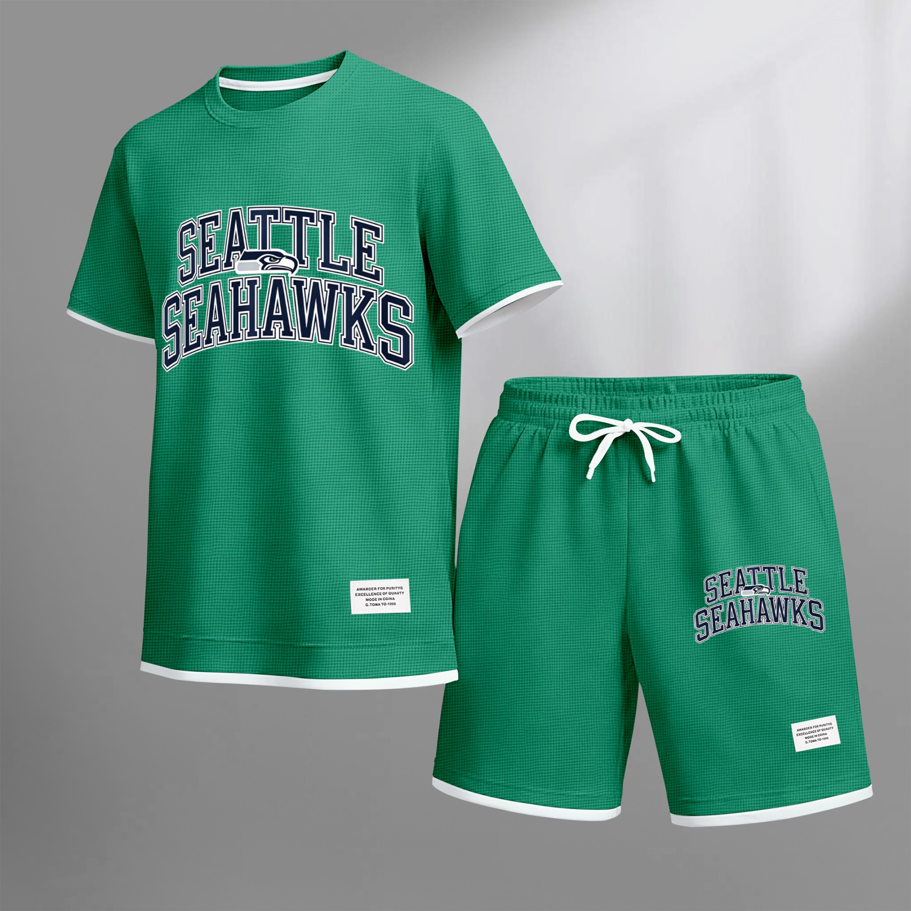 Men's Rugby-Themed Waffle Fabric Short-Sleeved Shirt And Shorts Set 009