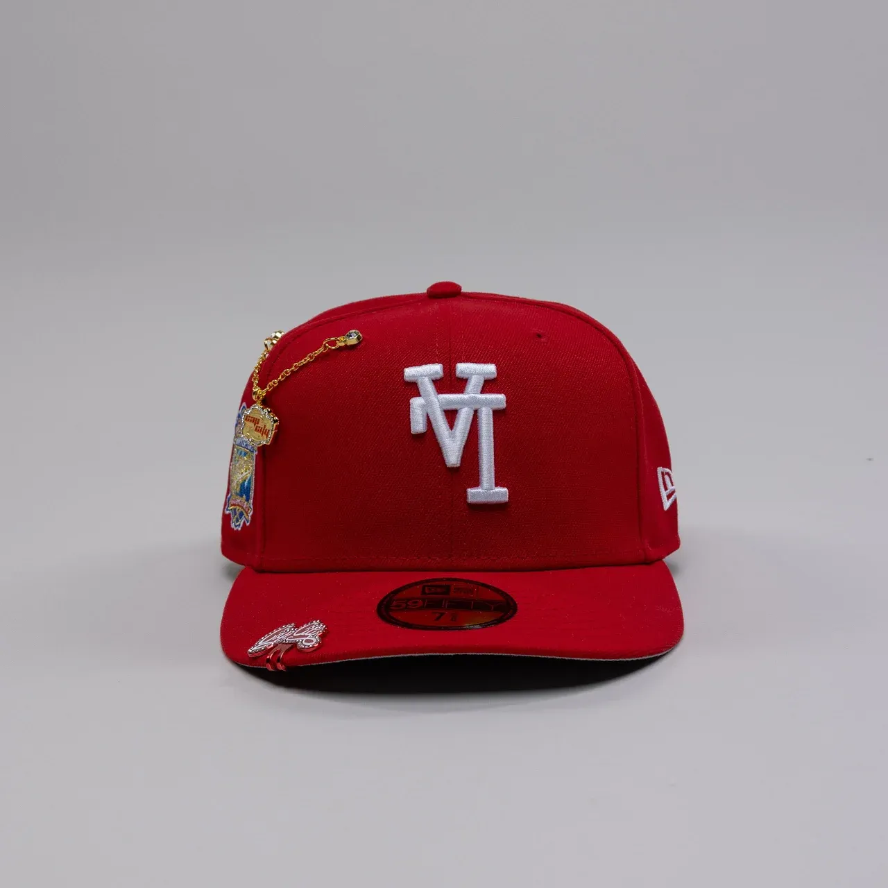NEW ERA EXCLUSIVE 59FIFTY RED UPSIDE DOWN LOS ANGELES DODGERS W/ 40TH ANNIVERSARY SIDE PATCH