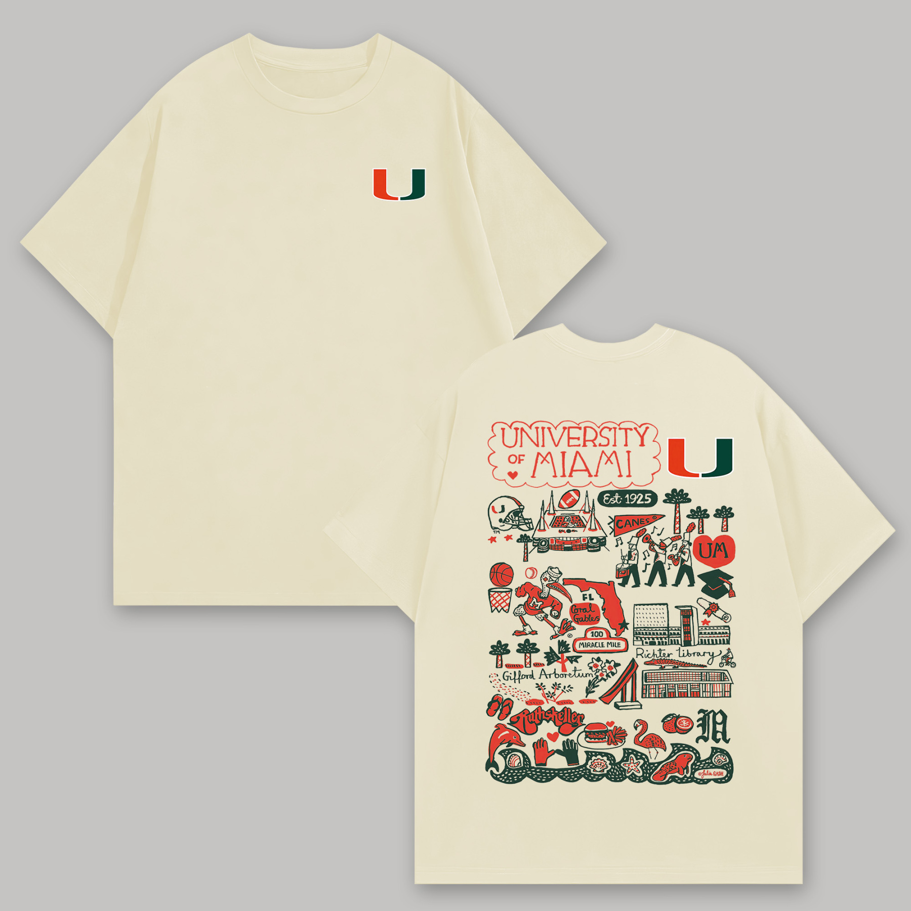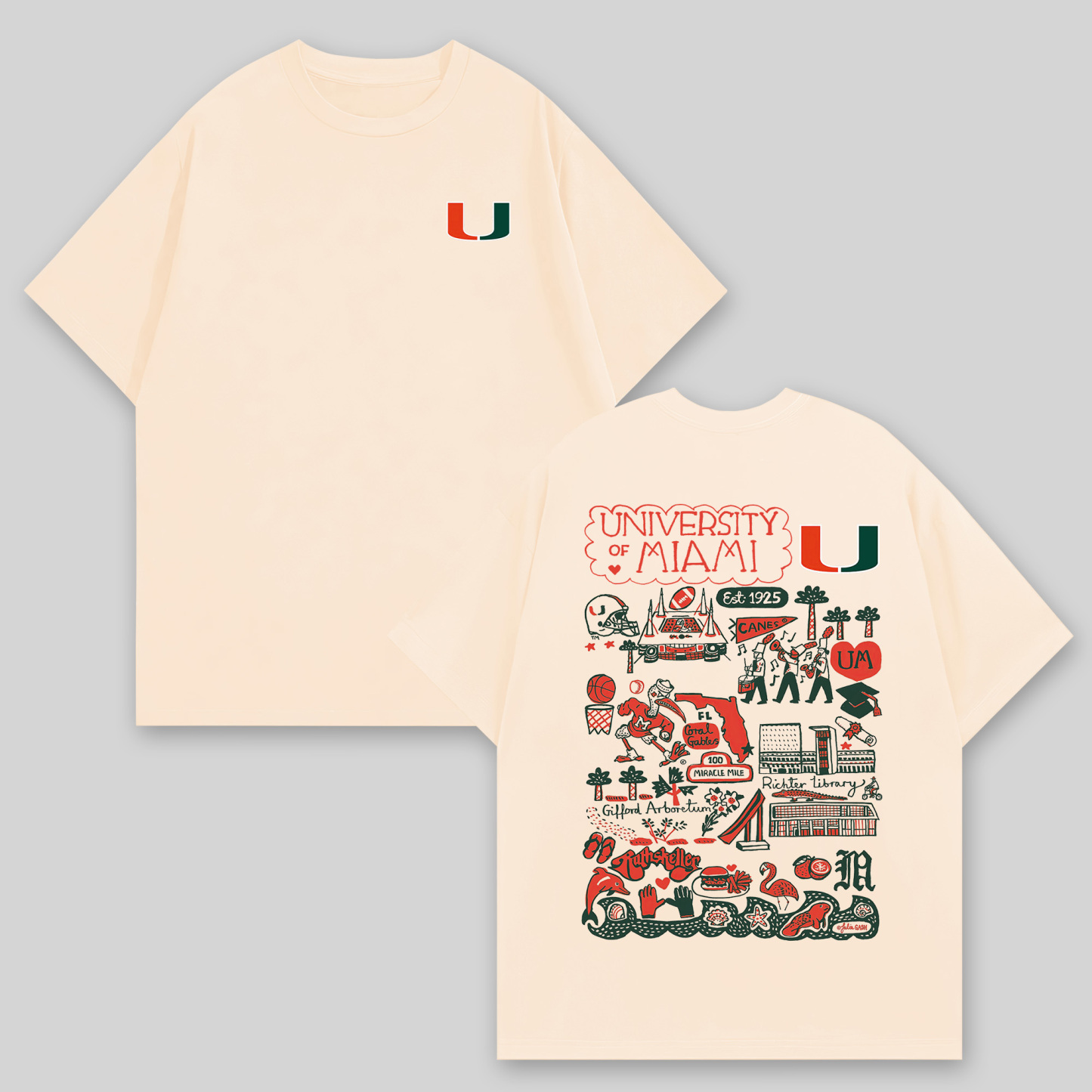 University of Miami Printed Oversized Unisex T-shirts