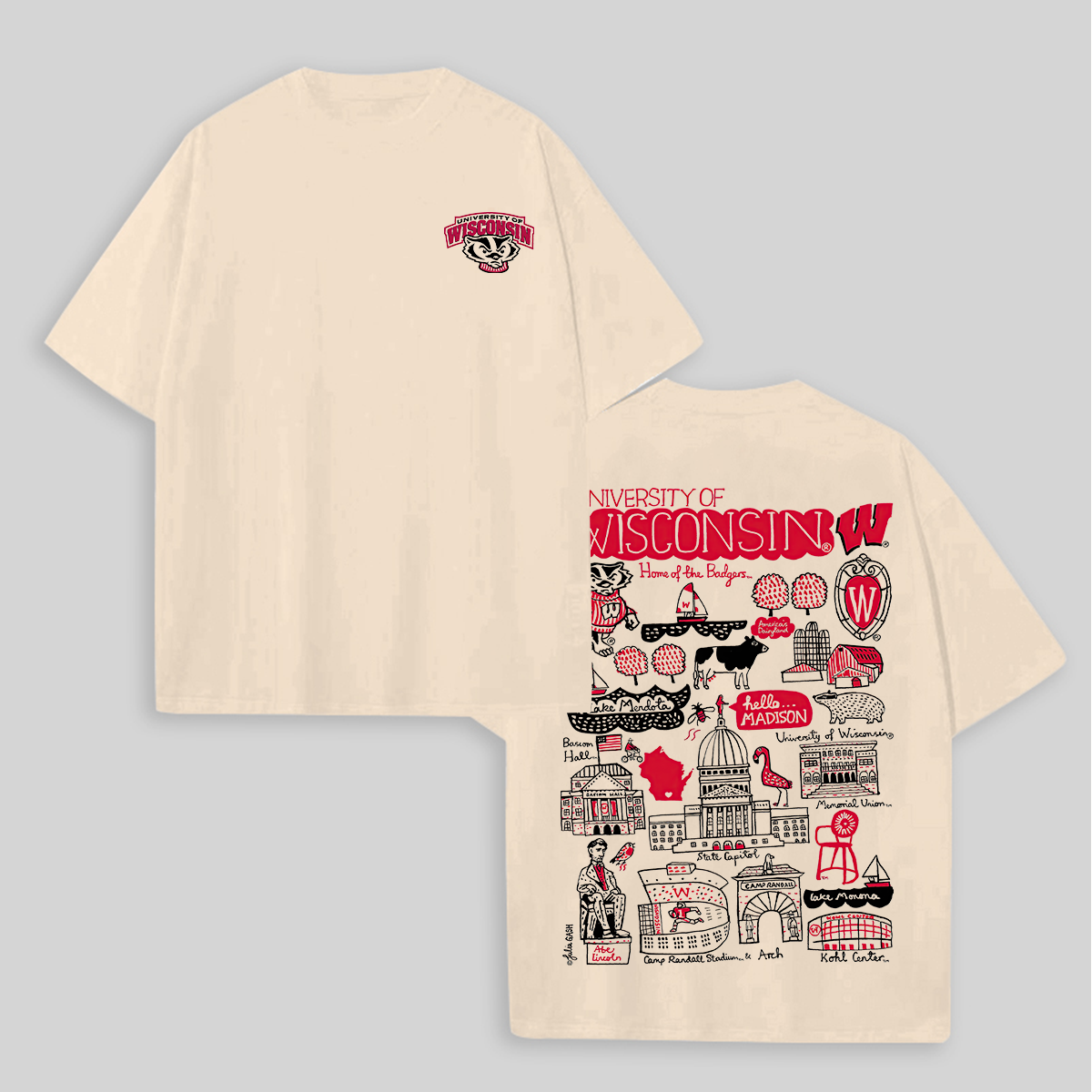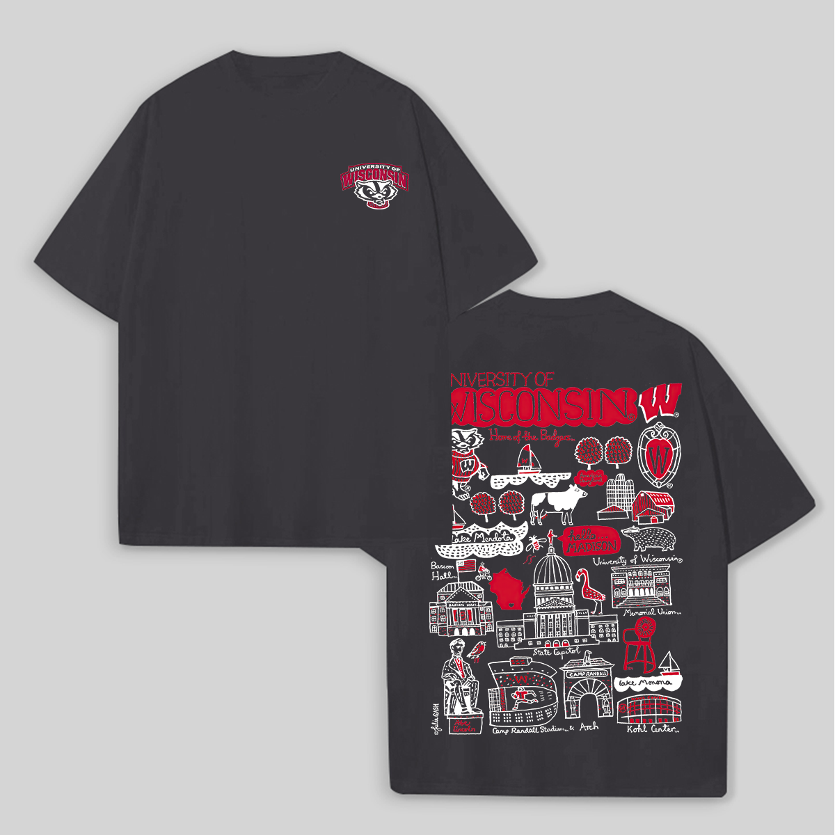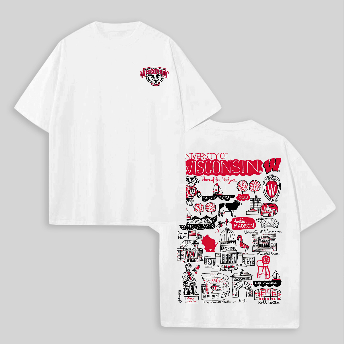 University of Wisconsin Printed Oversized Unisex T-shirts