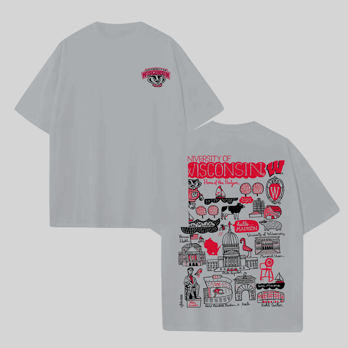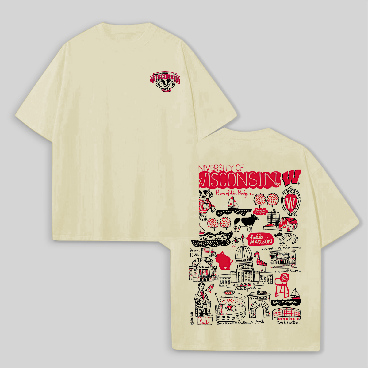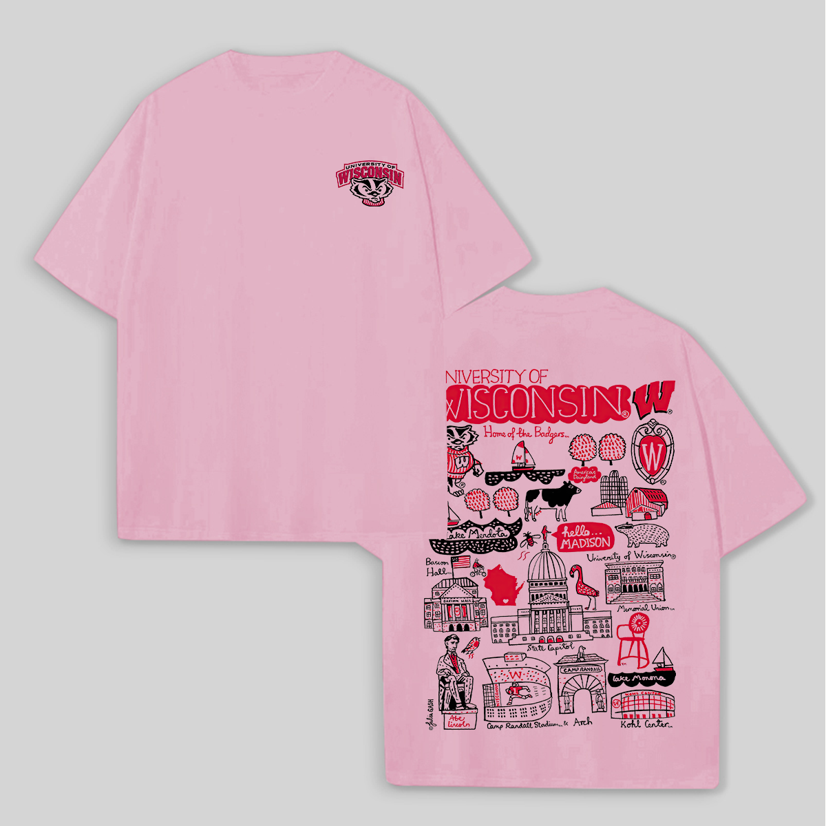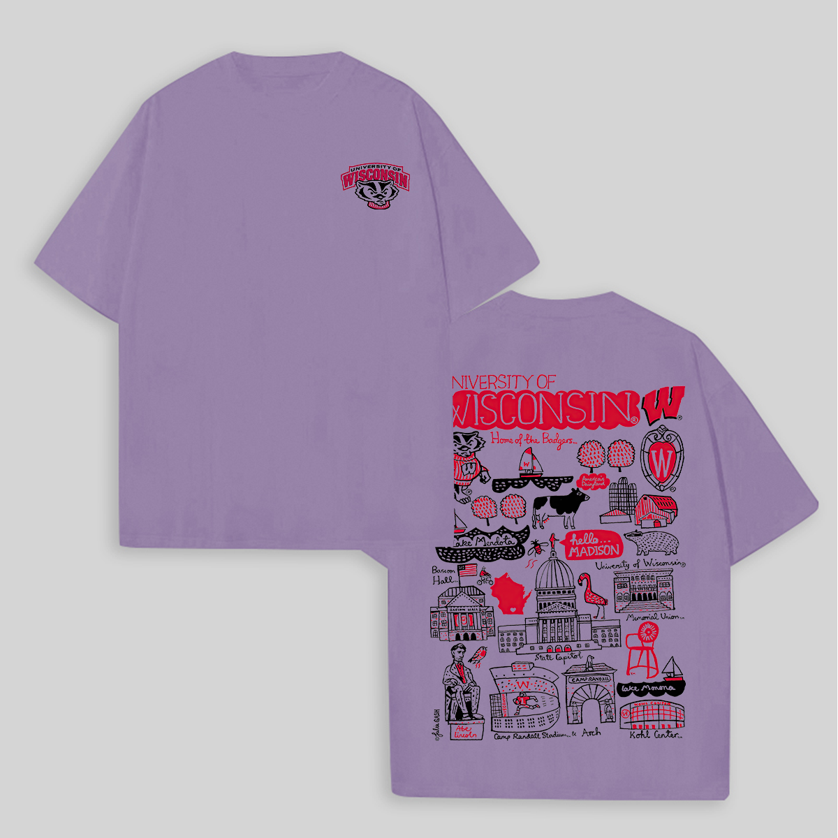 University of Wisconsin Printed Oversized Unisex T-shirts